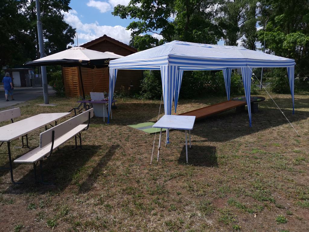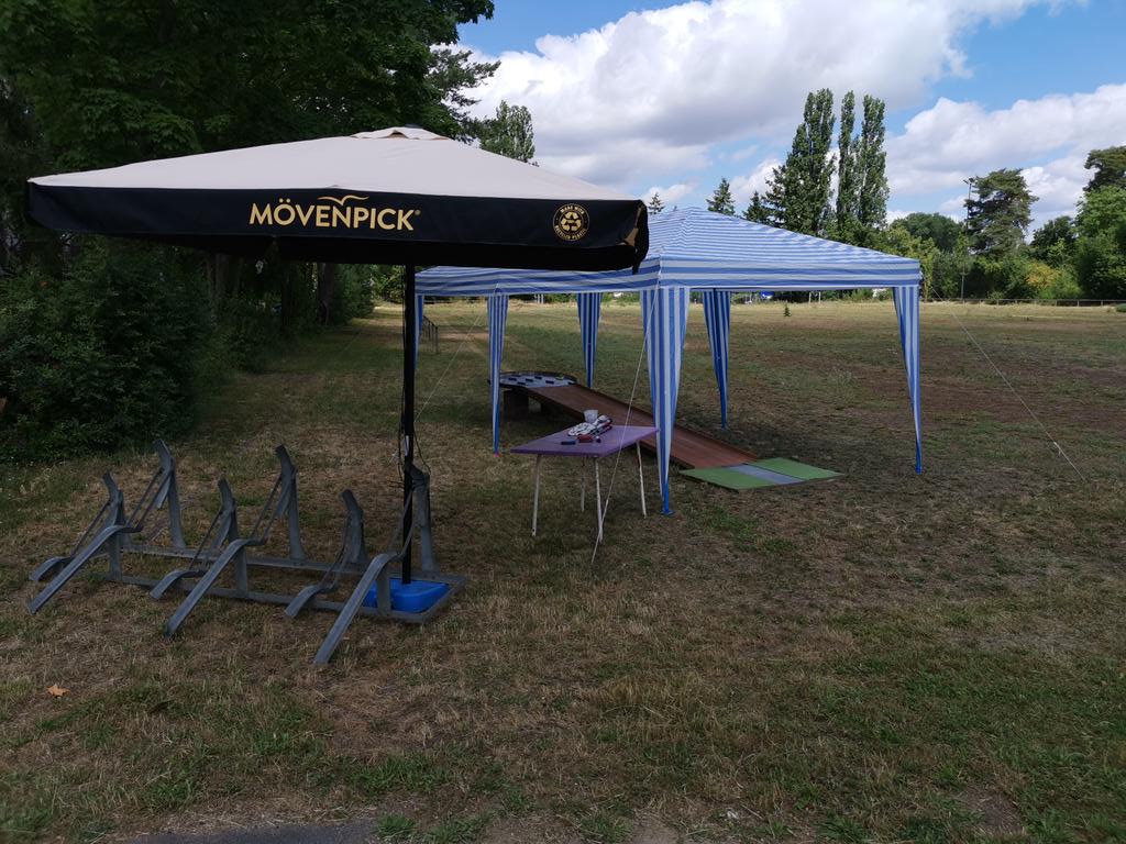 Zum Glück war nur sehr wenig Wind. Der Pavillon steht