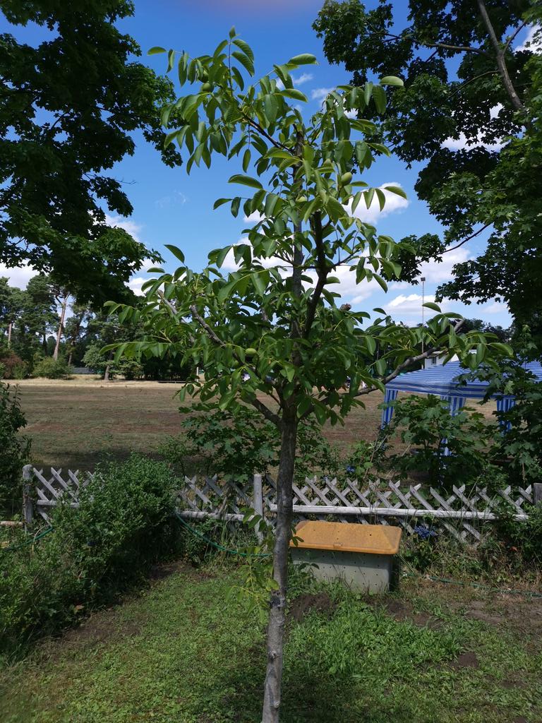 Unser sich schön entwickelnder Nußbaum muss auch mal in
