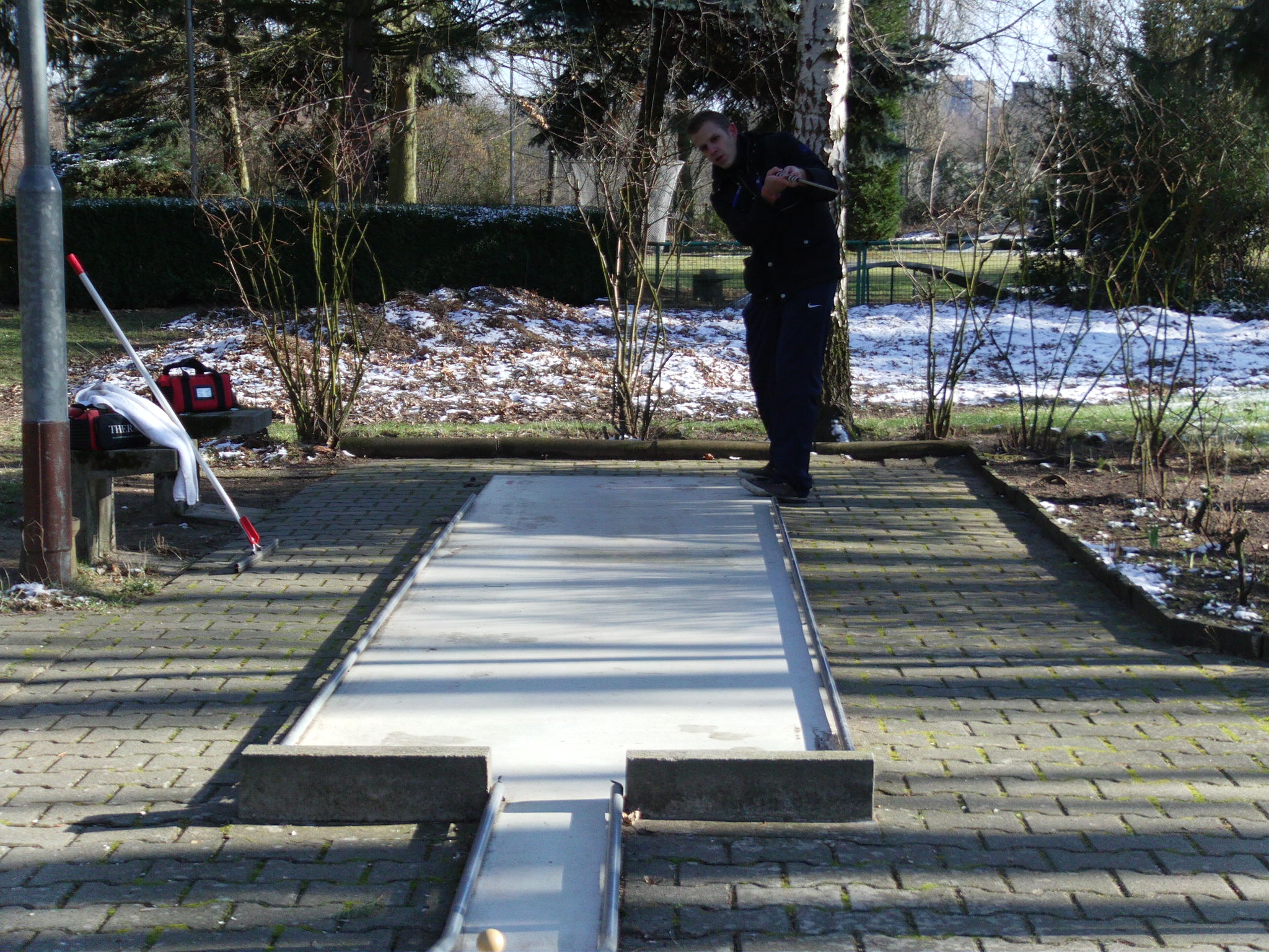 wärend Günter noch die Bahn 6 vom Eis befreit.