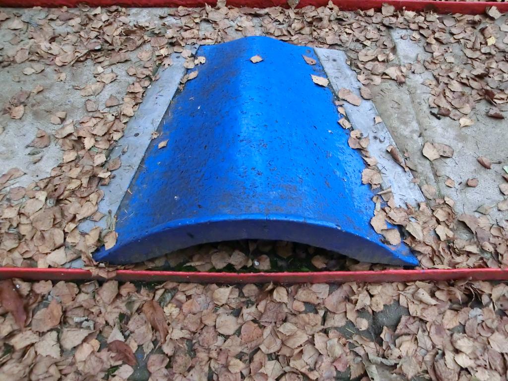 Bahnen und die Banden sind mit einer Art Betonfarbe gestrichen.