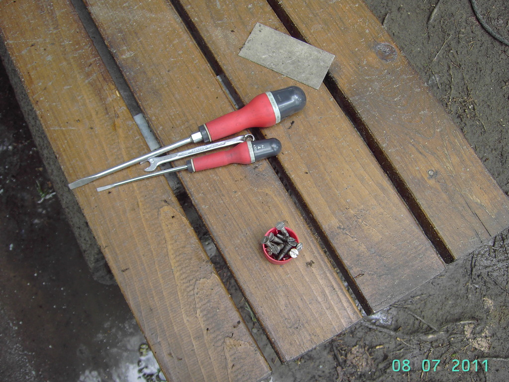 Die gereinigten Schrauben müssen jetzt wieder rein