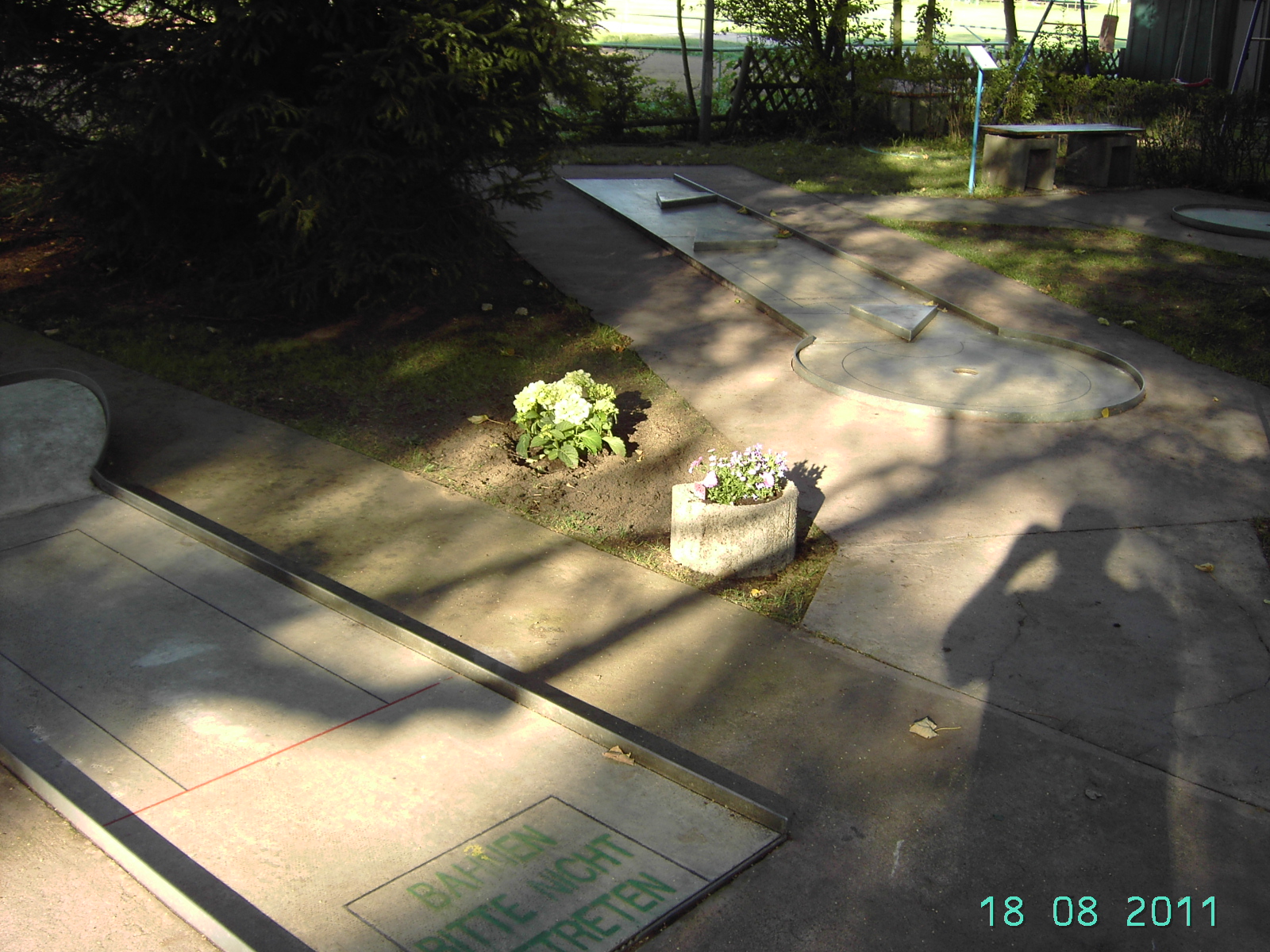 Nun hat Margit endlich auch Schneebälle (weiße Hortensien) auf dem Miniaturgolfplatz