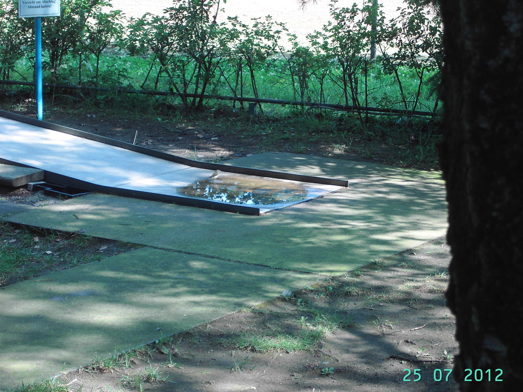 Nach dem Mähen und kehren werden die Bahnen und Wege noch abgespritzt