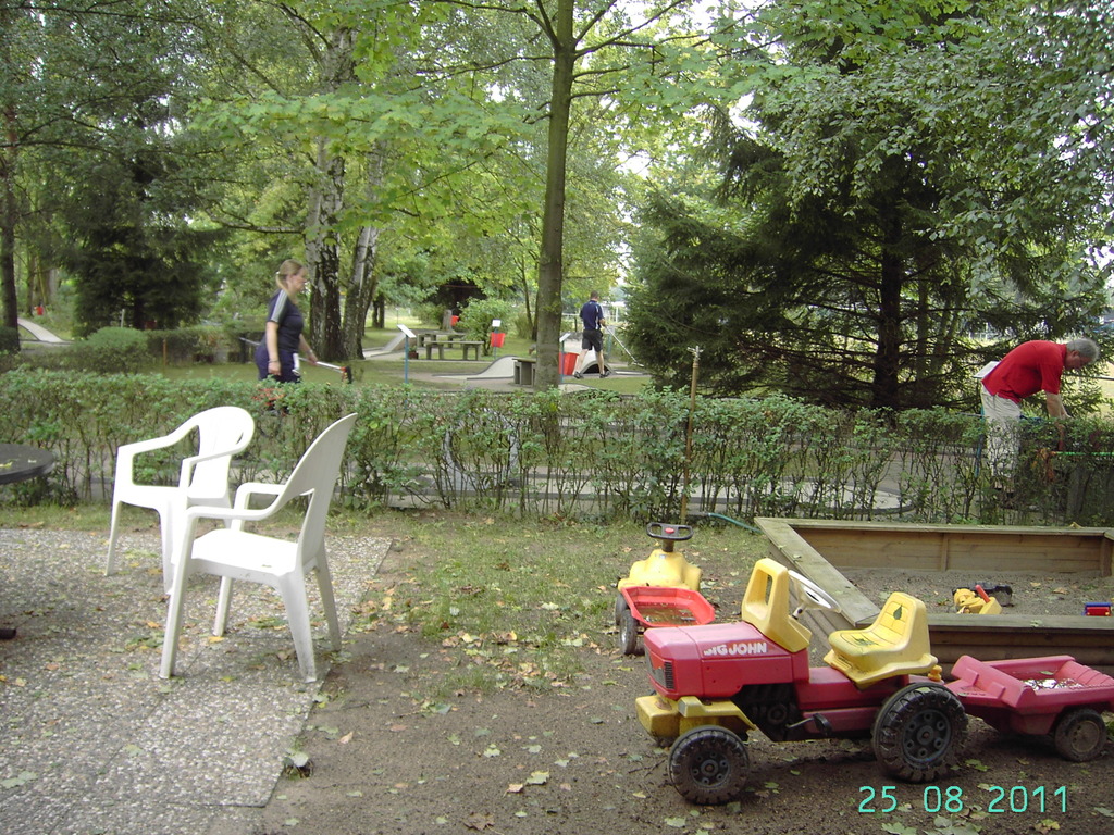 Nach dem Unwetter vom Vortag wird wieder sauber gemacht Pro Bahn und zugehörigem Umfeld kommt eine Schubkarre voll Laub und Äste zusammen