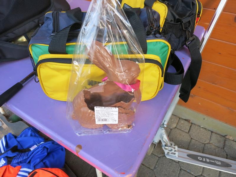 Schläge bis auch dieser Schokoosterhase in kleine Stücke