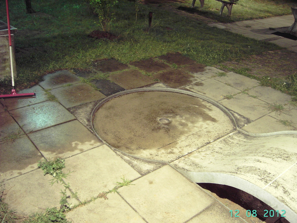 regnen. Die automatische Beregnungsanlage wurde vergessen abzustellen.